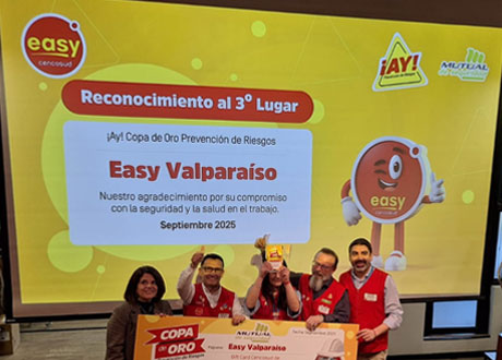 En una iniciativa que refuerza el compromiso con la seguridad y la prevención de riesgos, Easy y Mutual de Seguridad celebraron este 9 de septiembre la entrega de la "Ay! Copa de Oro Prevención de Riesgo", un premio que reconoce la excelencia en las prácticas preventivas dentro de sus tiendas.