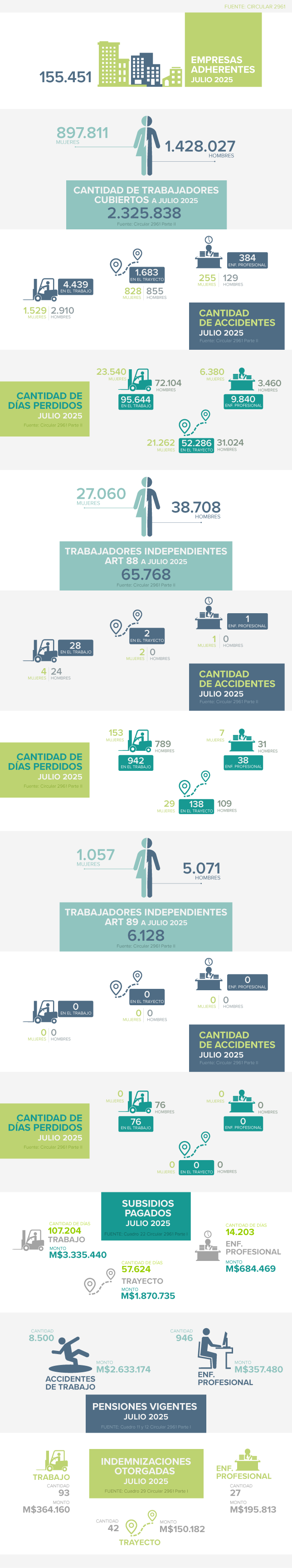 Aquí podrás encontrar información cuantitativa detallada sobre nuestros adherentes y trabajadores afiliados, así como sobre las estadísticas de accidentes de trabajo acumuladas. Estos datos están desglosados por tipo de siniestros, días perdidos y prestaciones económicas, brindando un registro estadístico de accidentes de trabajo que te ayudará a comprender mejor la situación actual.